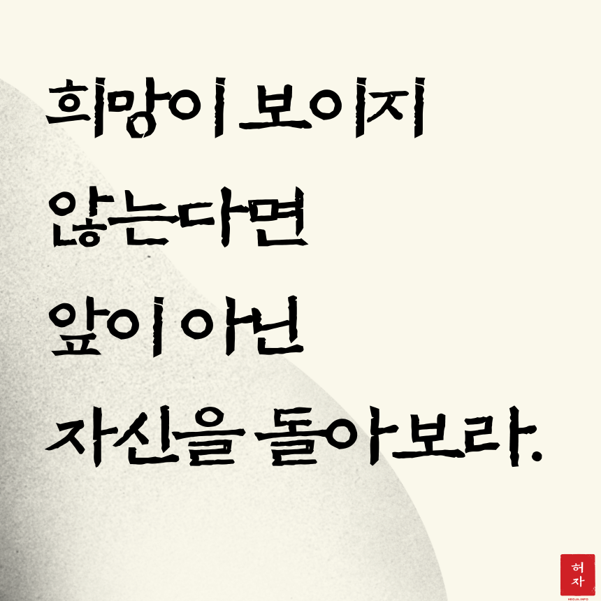 1. 희망이 보이지 않는다면 앞이 아닌 자신을 돌아보라. 우리는 항상 앞만 보고 달려가는 경향이 있다. 어떻게 보면 앞이 보이지 않을 때 자신의 내면을 먼저 돌아본다면 새로운 묘수를 찾을 수 있지 않을까?