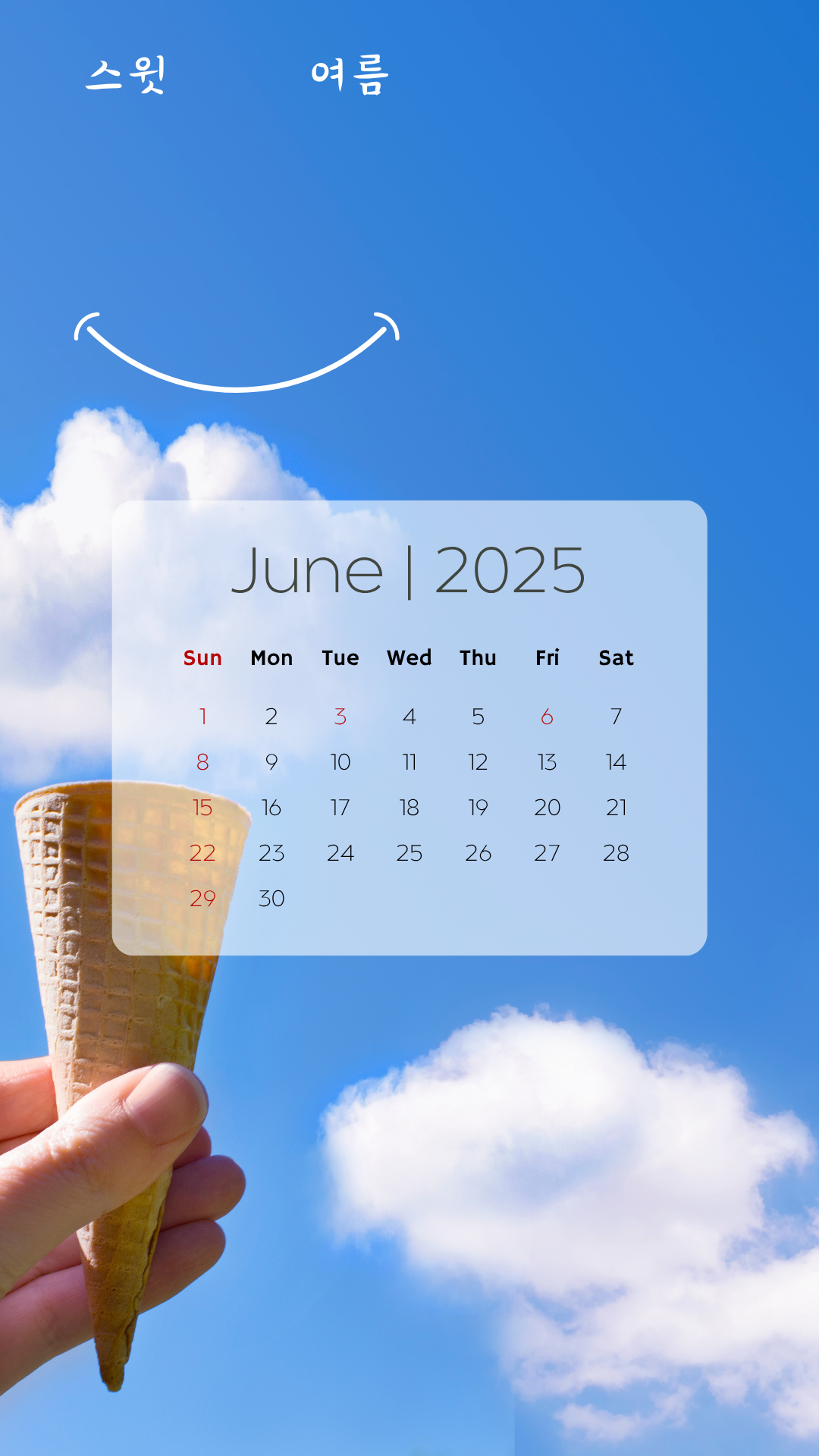 2025년 6월 달력 배경화면 이미지. 역시나 이번에도 스마트폰 6월 달력 배경화면 사진으로 만들어 보았다. 날짜는 여러 글자체가 있는데 바꾸기 귀찮아서 거의 동일하게 했음..ㅋ